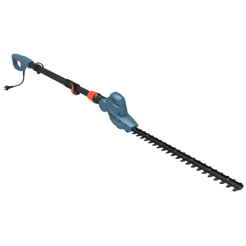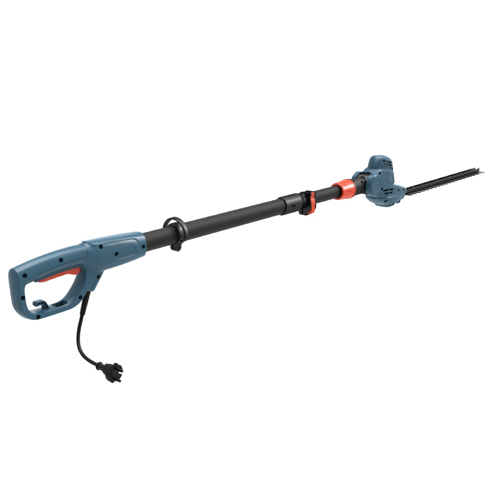 A:The telescopic tube extends up to 2300mm, allowing safe trimming of tall hedges without a ladder.