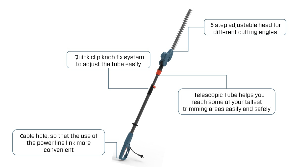 Telescopic Tube - Extends reach to safely trim tall hedges and shrubs