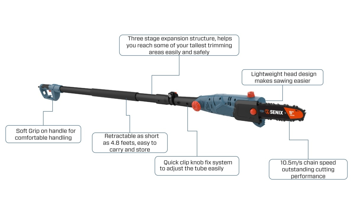Trimming tree branches at height: Safely reach and cut overhead limbs without the need for a ladder.