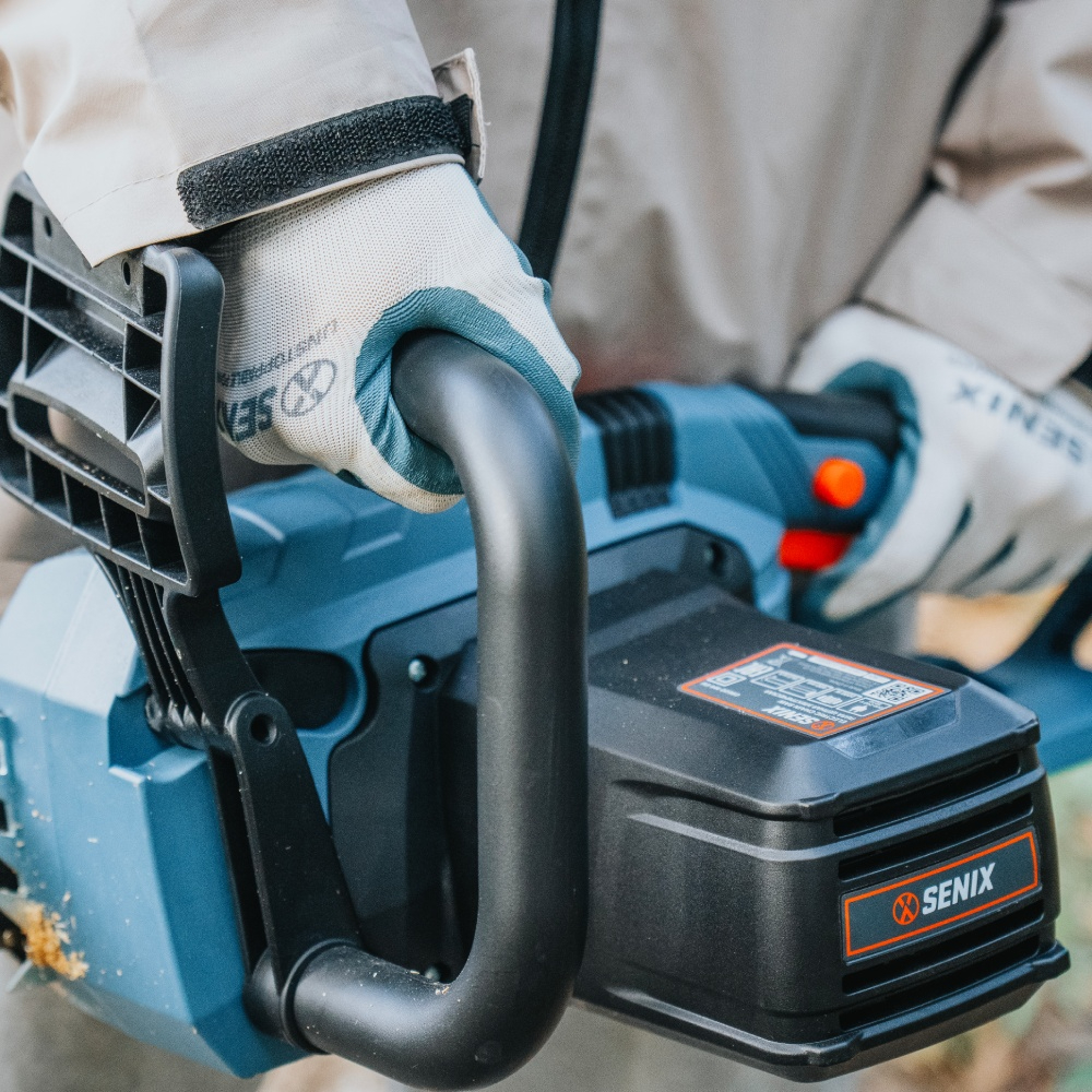 (5.0)The SENIX 2200W 40cm (16”) Chain Saw combines power, safety, and ease of use for medium-duty cutting. Featuring a 15.2 m/s chain speed, kick-back brake, and tool-free SDS tensioning system, it delivers precise and efficient cutting. With a lightweight and balanced design, it’s ideal for trimming branches, cutting firewood, and general garden maintenance in any working position.