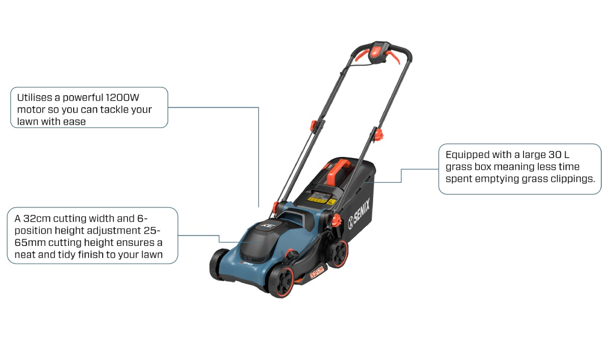 Utilises a powerful 1200W motor so you can tackle your lawn with ease