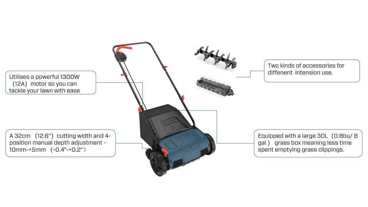 Wet or Waterlogged Lawns: Using the scarifier & raker on wet soil can cause clogging, poor performance, or damage to the turf.