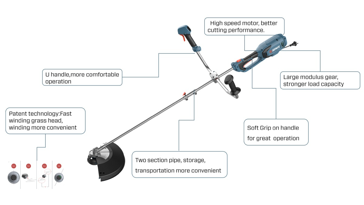 (5.0)The SENIX 1200W Brush Cutter is a powerhouse built for serious land clearing. Its 1200W motor drives both a 4-tooth metal blade for cutting thick brush and a trimmer head for grass. Featuring a control-oriented U-handle, large modulus gear for durability, and a split shaft, it combines professional-grade power with a user-focused design for tackling the most overgrown areas.