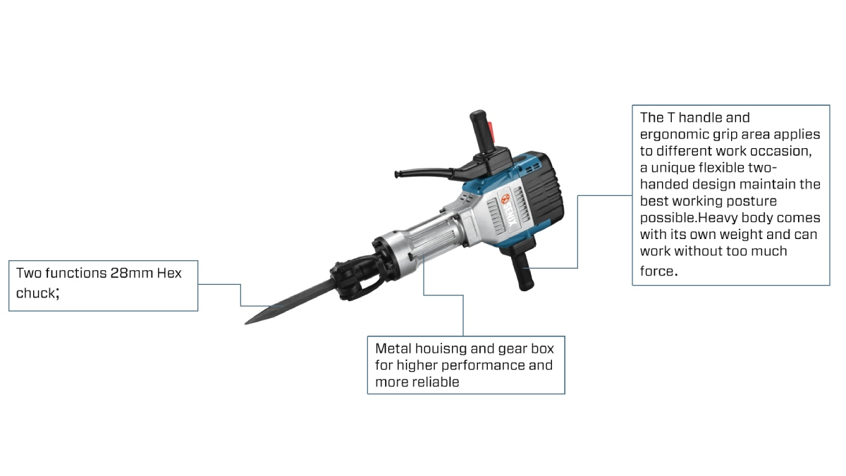 Powerful Motor – 2000W motor delivers high performance for heavy-duty demolition tasks.