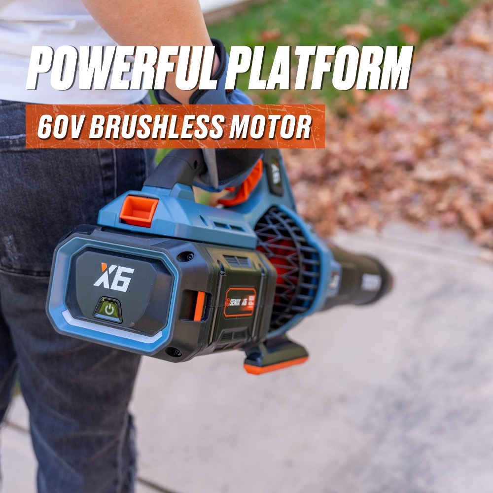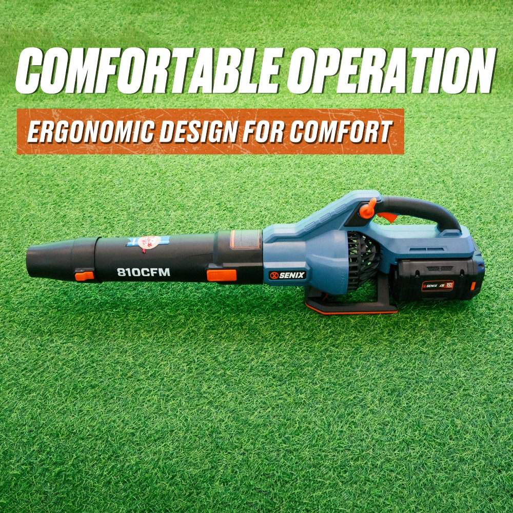 (5.0)The SENIX 60V Brushless Blower packs powerful air volume and speed into a lightweight, balanced design. Featuring a high-performance motor, cruise control, and up to 810 CFM output, it offers professional-grade cleanup power for any yard or outdoor space — with zero compromise on control or comfort.