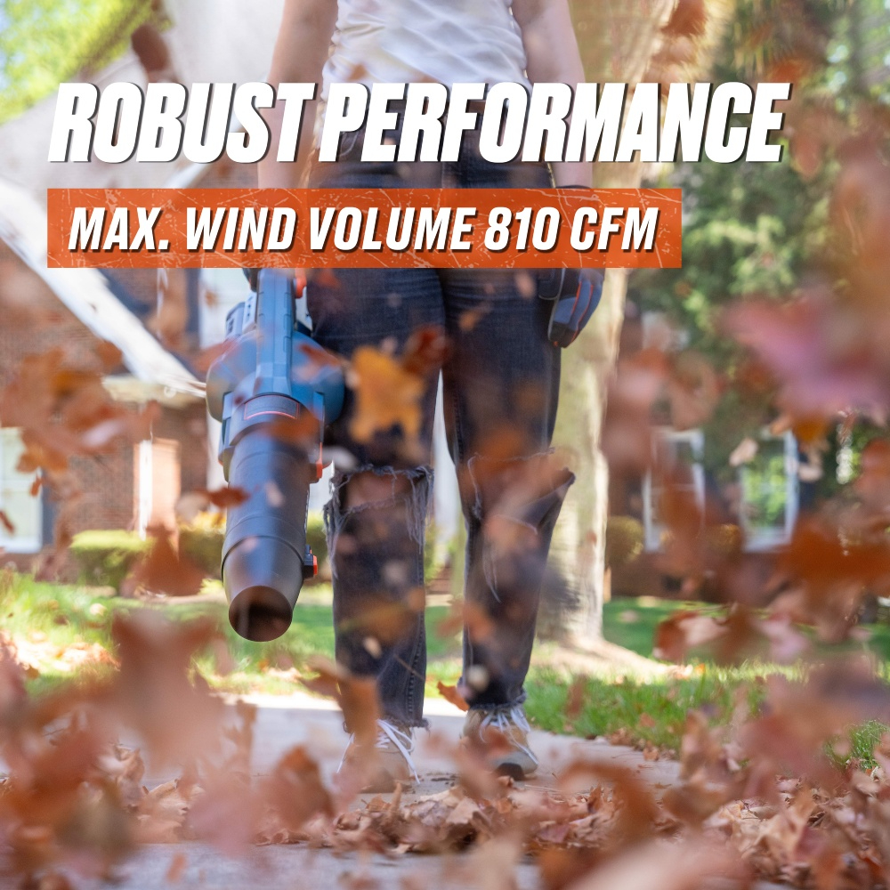 Extreme Blowing Power – Generates up to 1380m³/h (810 CFM) and 270 km/h airspeed to quickly move even heavy, wet debris.