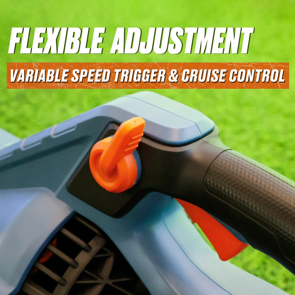 Variable Speed Trigger with Cruise Control – Easily adjust airflow to suit the task, while the cruise control locks in speed to reduce hand fatigue.