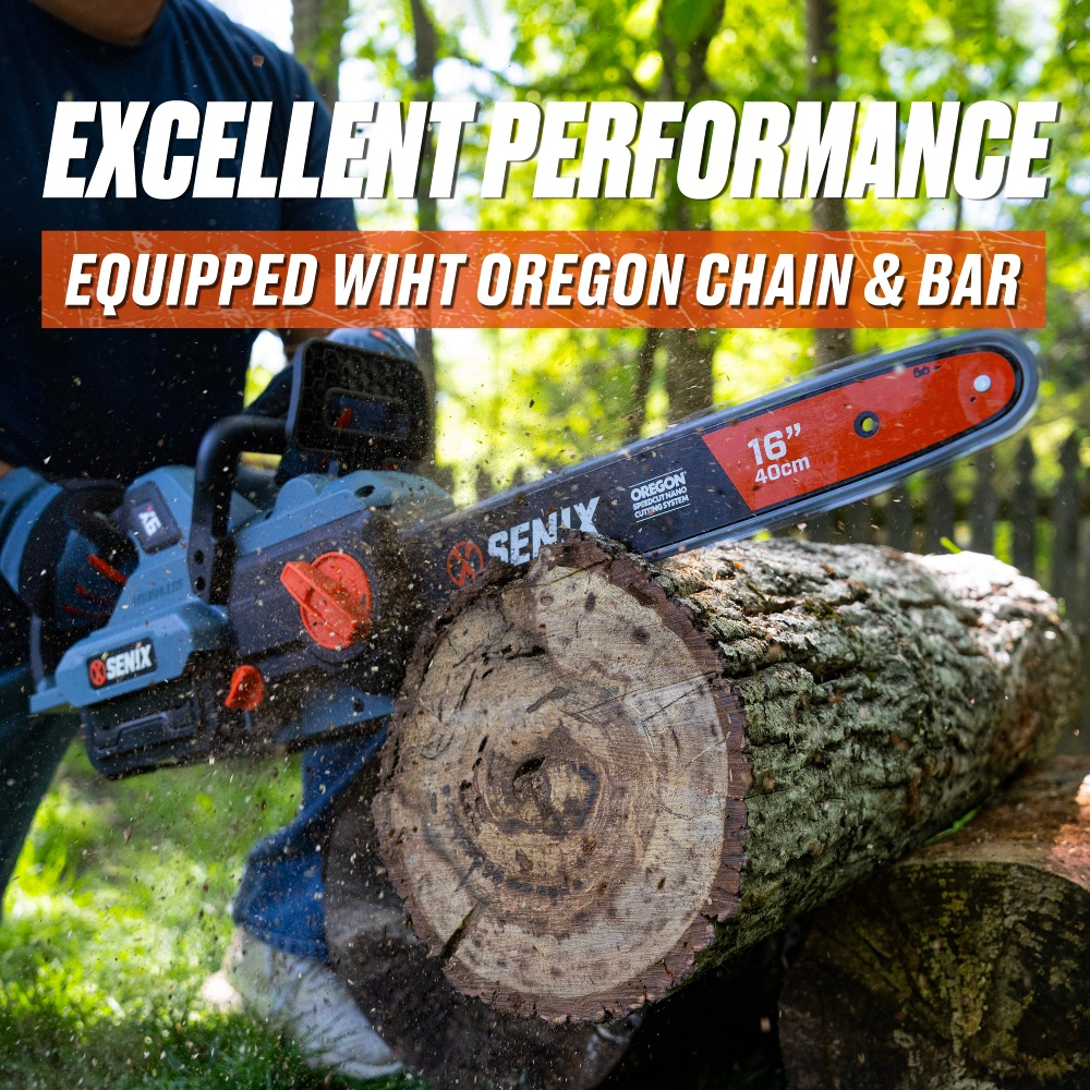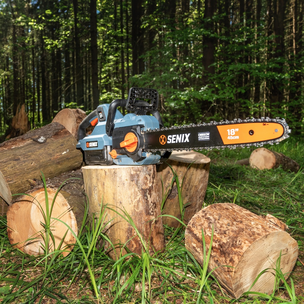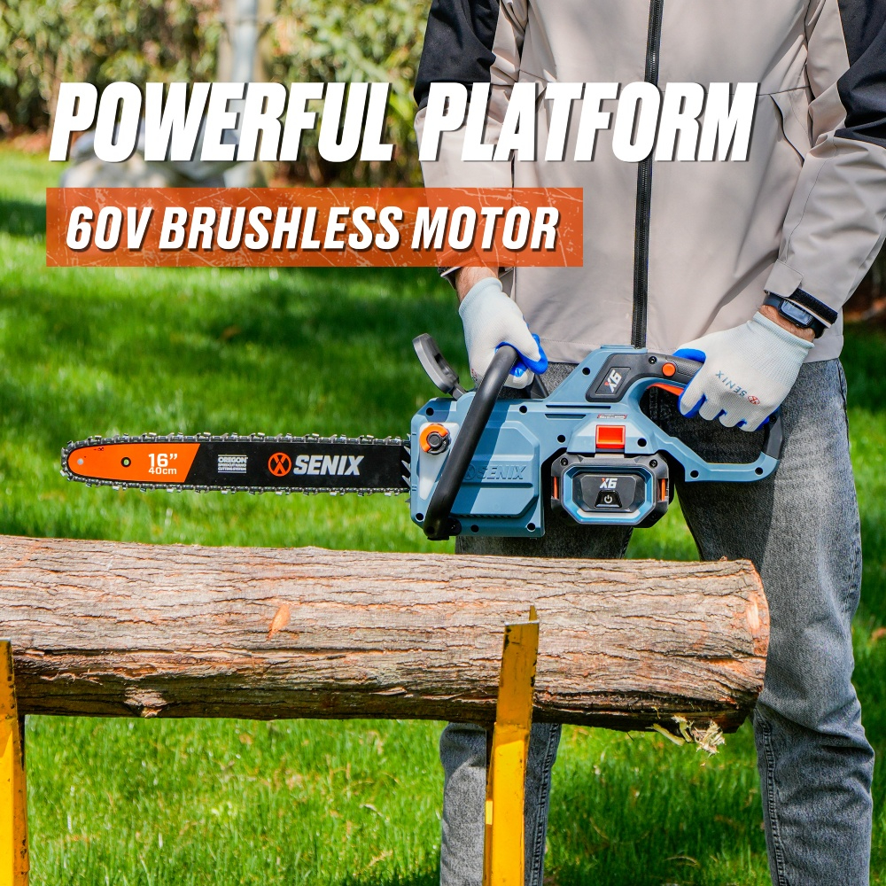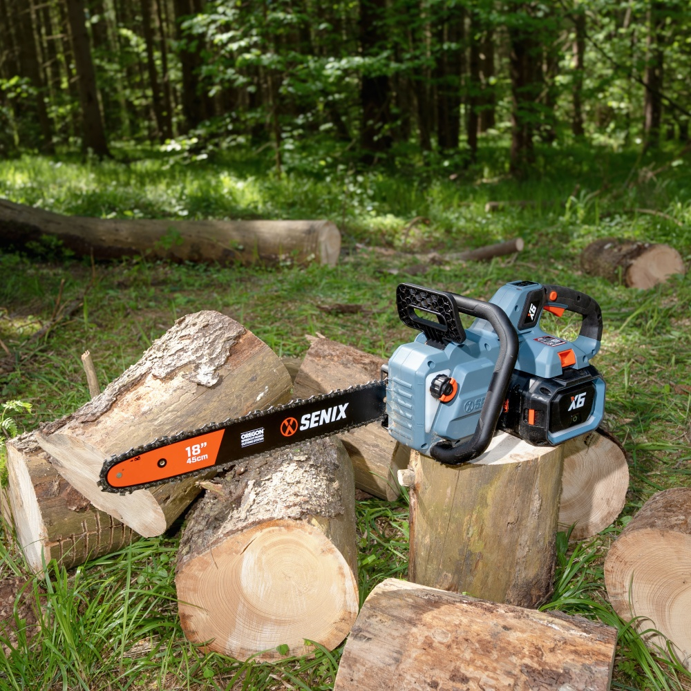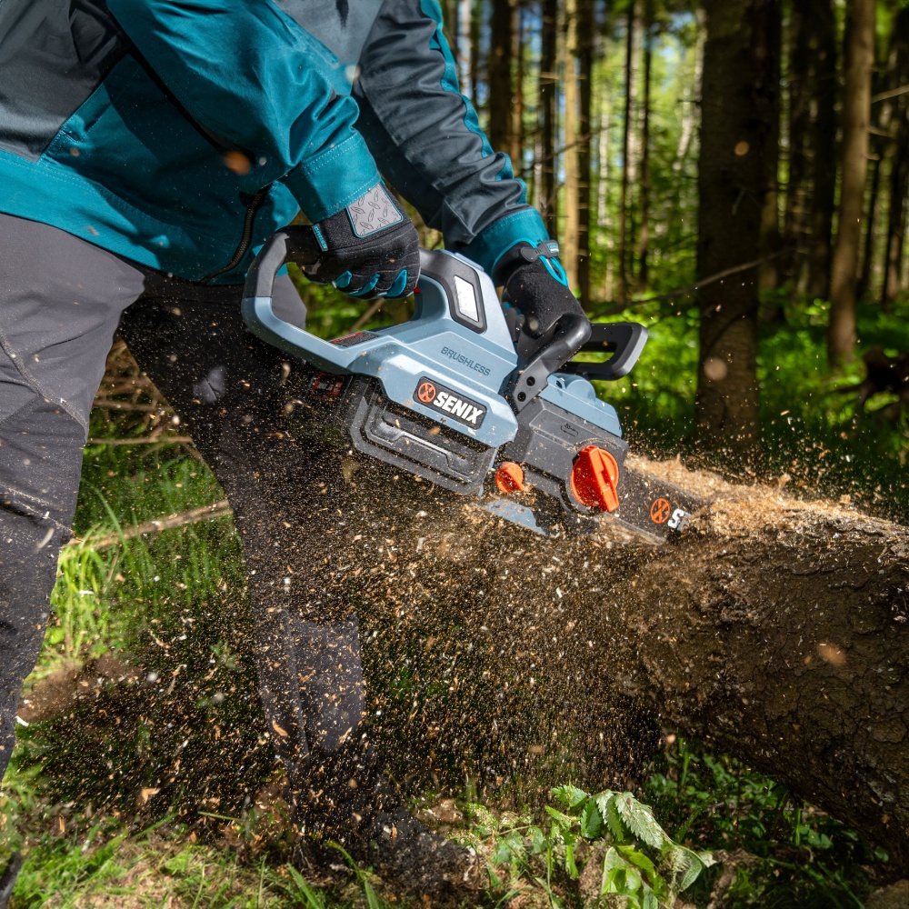 (5.0)Setting a new benchmark in performance, the SENIX 60V Max X6 Brushless Chainsaw delivers an industry-leading 26m/s chain speed for unmatched cutting efficiency. Engineered for HighEnd household and ProConsumer users, it combines lightweight design with powerful output—offering superior control, speed, and performance with the advanced SENIX 60V X6 HyperCore Battery.