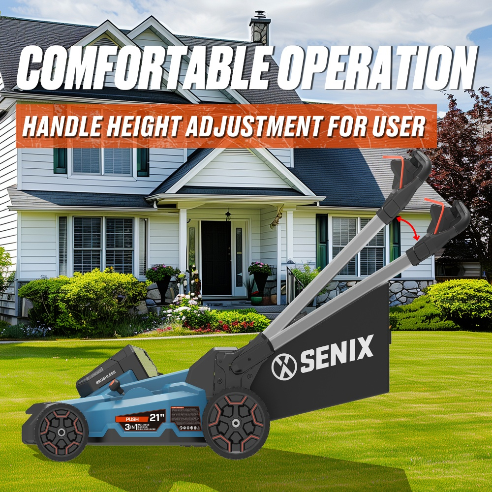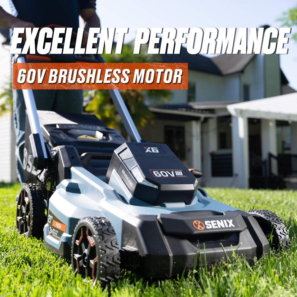 (5.0)The SENIX 60V Push Lawn Mower offers powerful brushless performance, 3-in-1 mowing versatility, and up to 60 minutes of runtime. With a wide cutting deck, adjustable handle, and a large collection bag, it’s ideal for medium-to-large yards, delivering efficient and precise cuts with every pass.