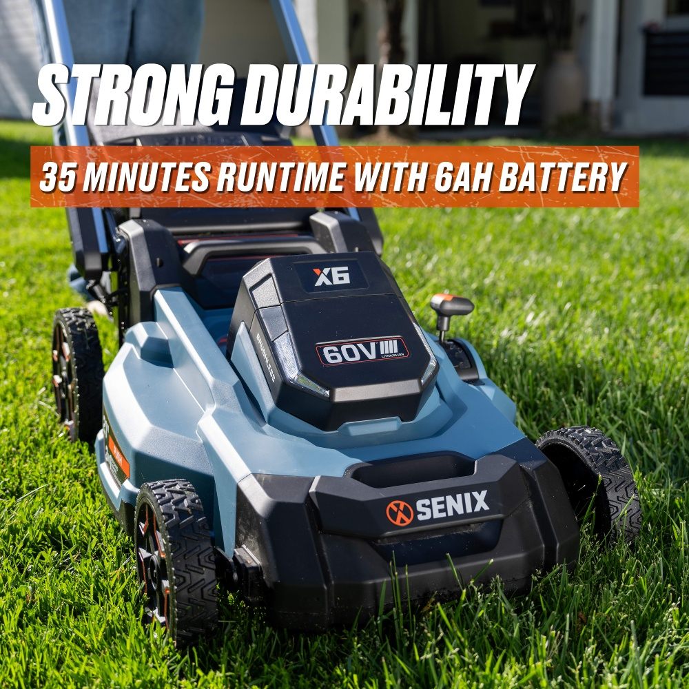 Up to 60 Minutes Runtime – Powered by a high-capacity 60V 6.0Ah battery for large lawns