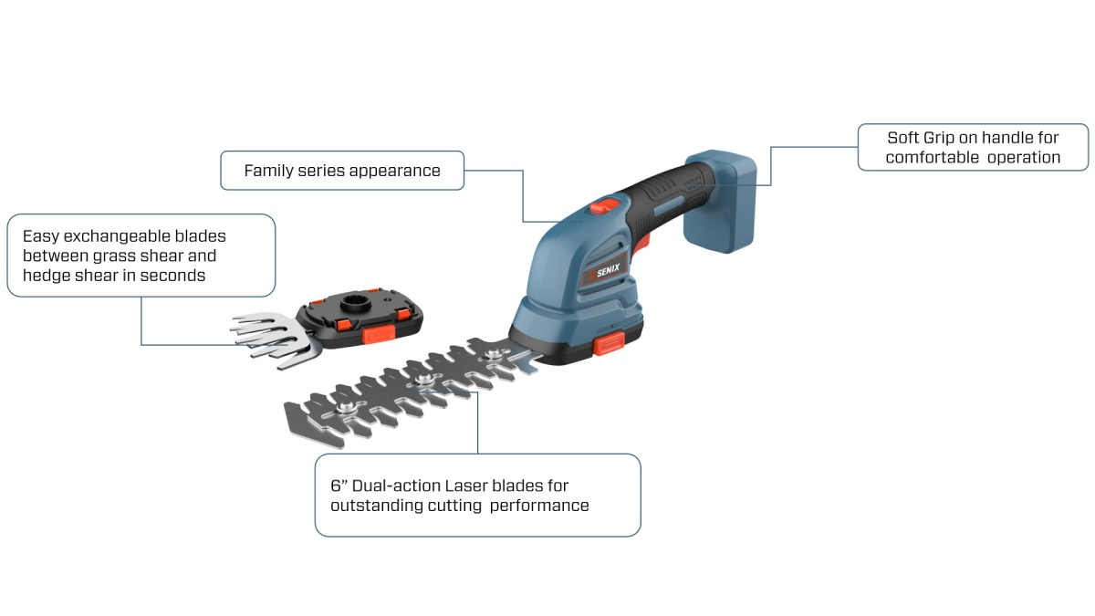Easy Blade Exchange – Switch between grass and hedge blades in seconds.