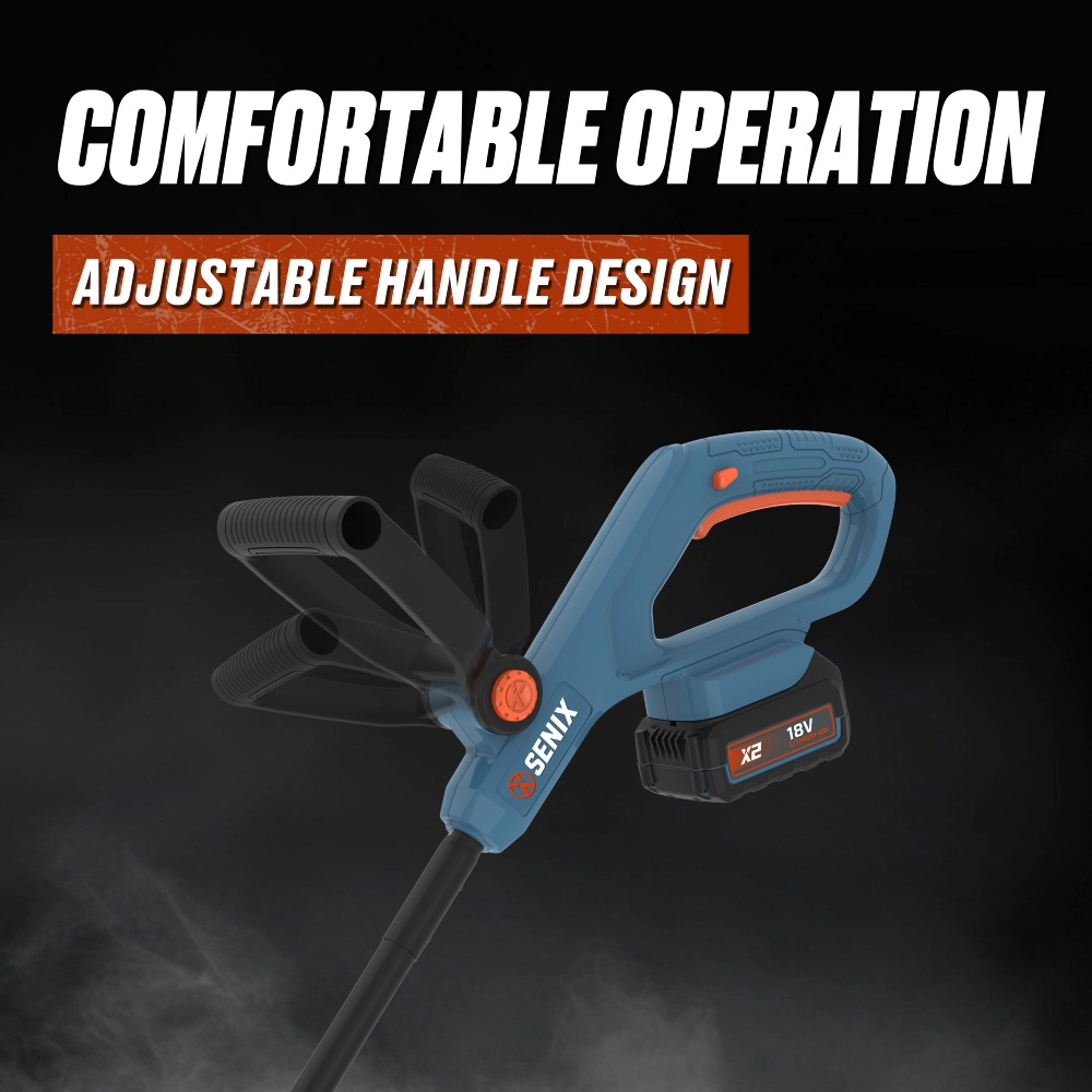 (5.0)The SENIX 20V Cordless 26cm (10”) String Trimmer delivers lightweight precision for easy lawn maintenance. Featuring a 180° rotating head, adjustable handle, and detachable split shaft, it’s built for comfort, portability, and storage convenience. With a balanced single-line design and long runtime, it's perfect for small to medium yard trimming without the hassle of cords.