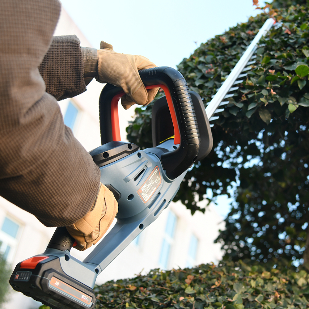 Designed for user comfort and convenience, this hedge trimmer features a full wrap-around handle with soft-grip technology, allowing for both horizontal and vertical cutting with reduced fatigue. At just 2.5kg, the lightweight design makes it easy to maneuver during extended trimming sessions. The innovative removable handle design not only enhances cutting flexibility but also minimizes storage space, making it ideal for transport and compact storage.