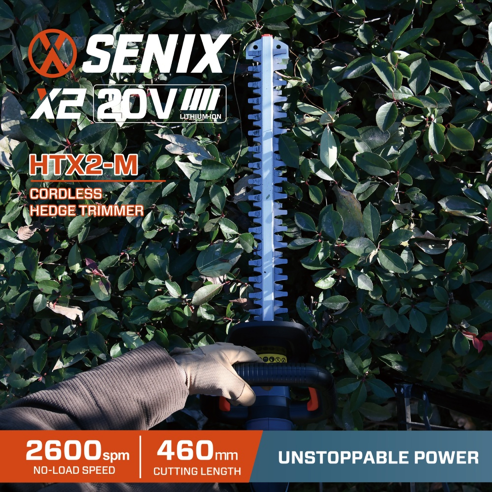 (5.0)The SENIX 20V Cordless 467mm (18'') Hedge Trimmer delivers outstanding cutting with dual-action laser blades and aluminum support. Featuring a full wrap-around handle for versatile cutting, soft-grip comfort, and easy installation, it’s powered by a 20V brushed motor (2300SPM). Lightweight (2.5kg) with 42min runtime (2.5Ah battery), it’s ideal for precision trimming up to 20mm branches.