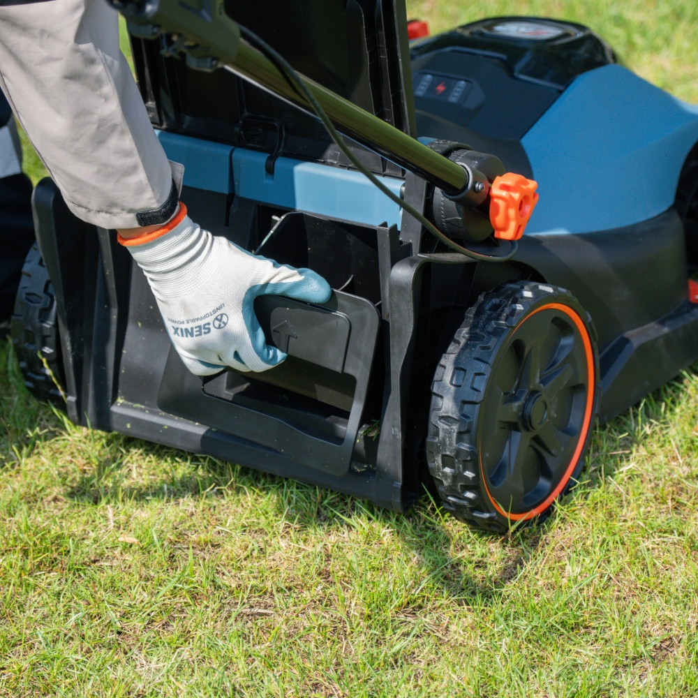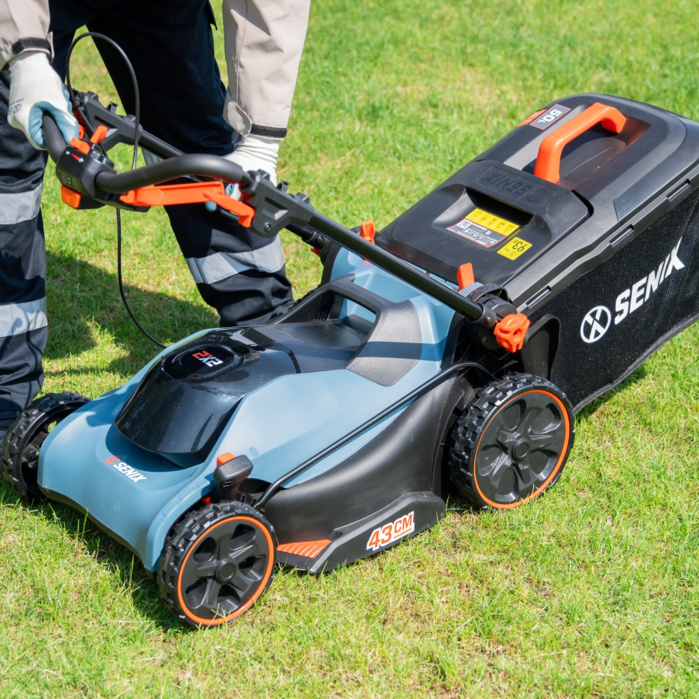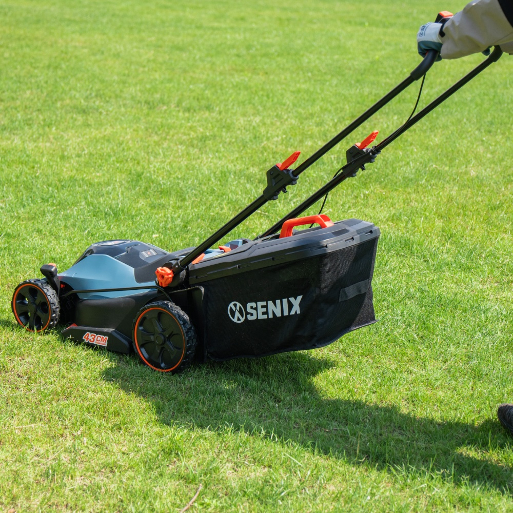 (5.0)The SENIX 40V Brushless 43cm Self-Propelled Lawnmower offers powerful, quiet performance with twin 4.0Ah batteries, covering up to 450m². Featuring 6 height settings, a 50L grass bag, and a self-propelled rear-wheel drive, it delivers effortless lawn care for medium-sized gardens.