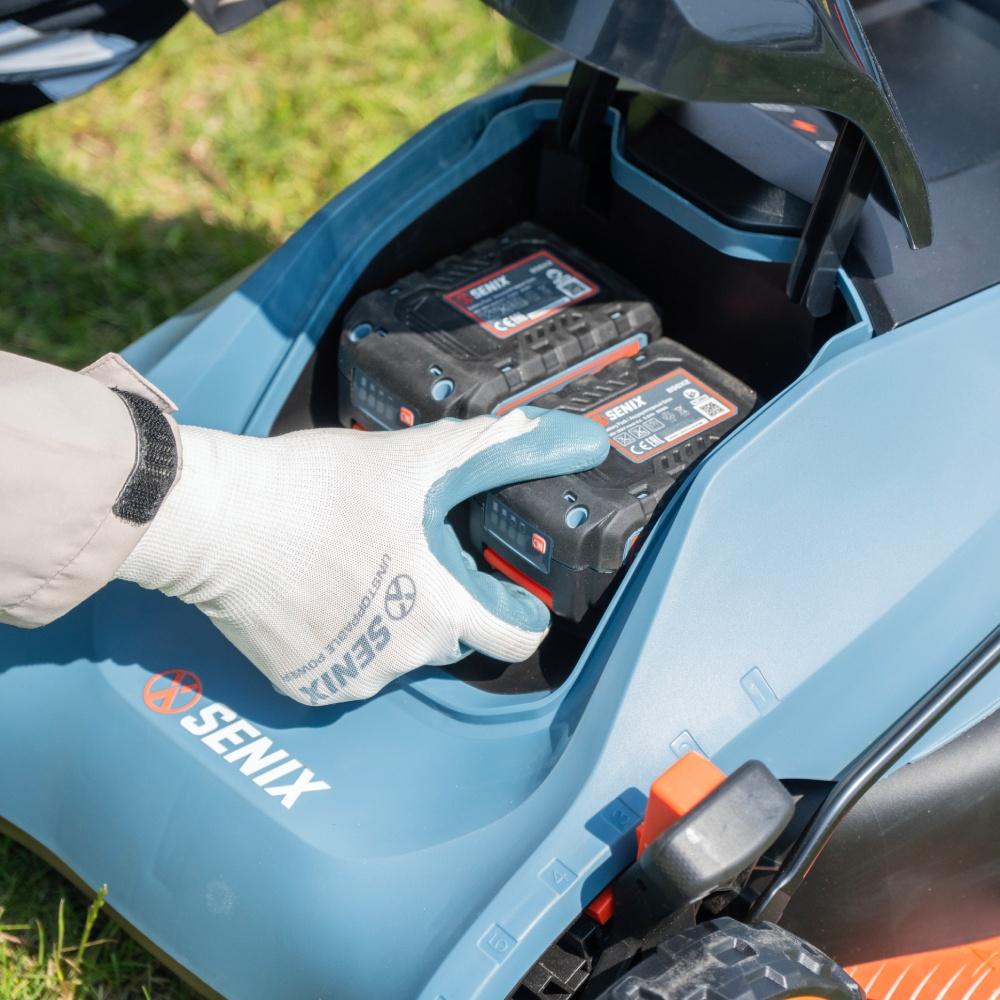 Twin 4.0Ah Batteries – Provides up to 30 minutes runtime for lawns up to 450m².