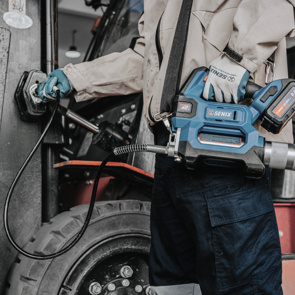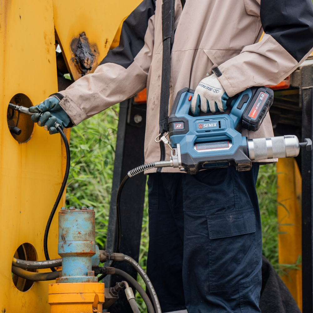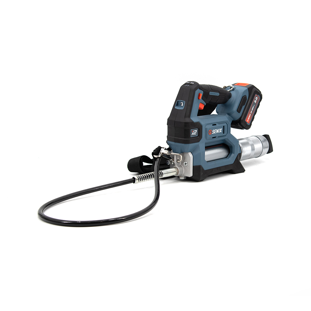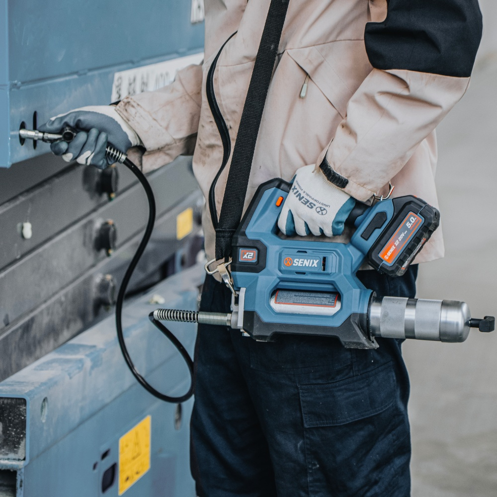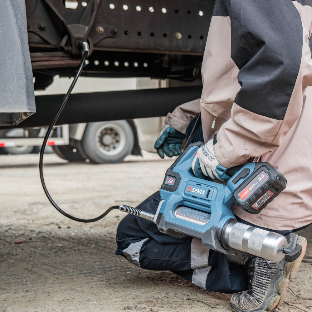 The SENIX 20V Brushless 690Bar Grease Gun is engineered to meet the toughest lubrication demands in industrial, automotive, and agricultural settings. This cordless grease gun delivers unmatched performance and efficiency with a best-in-class max pressure of 10,000 PSI and a max flow rate of 10 oz/min. It's equipped with a pre-set grease counter dial, offering precise control over the amount dispensed—ideal for professionals who demand consistent and measured output.