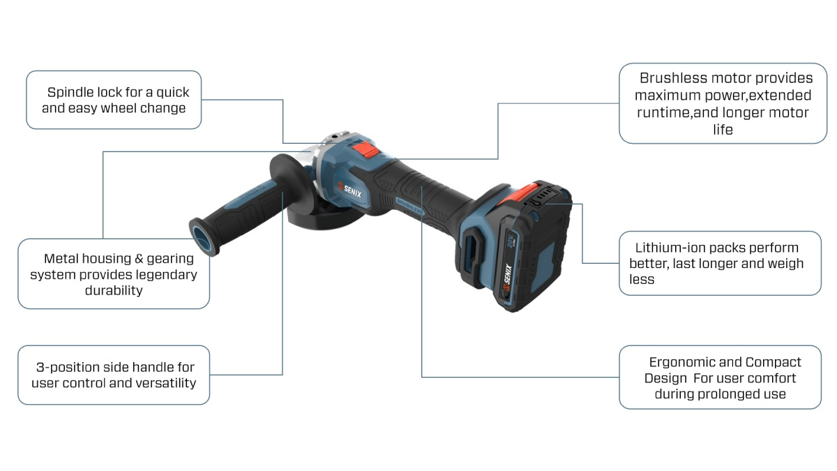 (5.0)Cut through tough materials with ease using the SENIX 20V Brushless 125mm Angle Grinder. With 8,500 RPM of power, durable construction, and ergonomic design, it delivers unmatched performance and comfort. Lightweight yet powerful, it's built for pros who demand efficiency, speed, and all-day usability in every task.