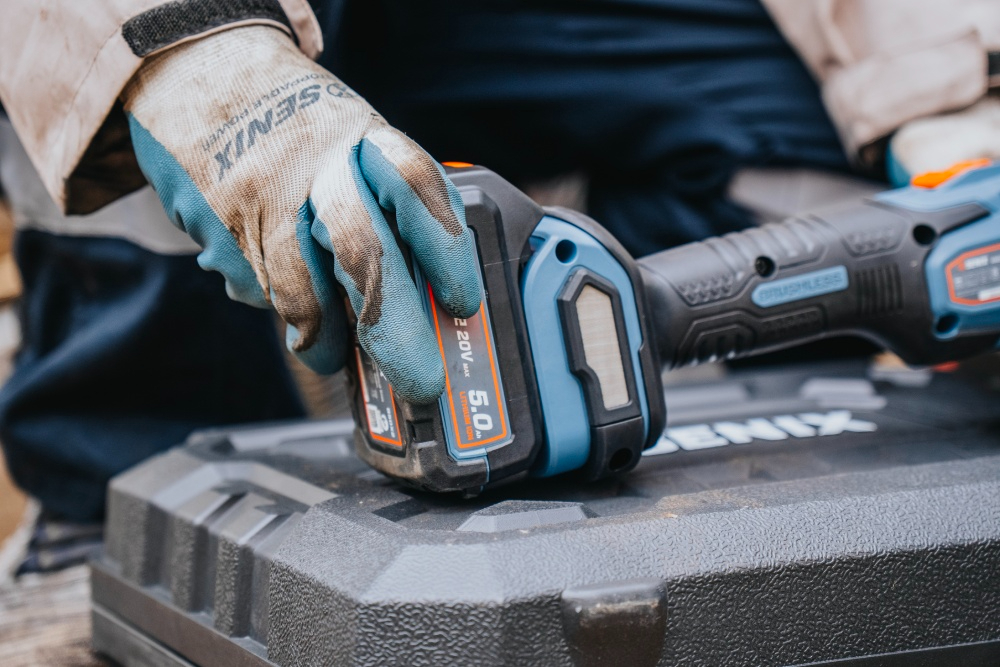 A: It’s compatible with SENIX 20V Max DC lithium-ion batteries. These offer longer runtime and lighter weight vs. older battery tech.