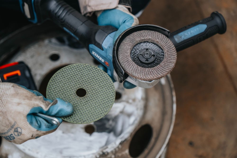 A: Uses standard 100mm (3.93") discs with M10 spindle thread—compatible with cutting, grinding, sanding, and wire wheels.