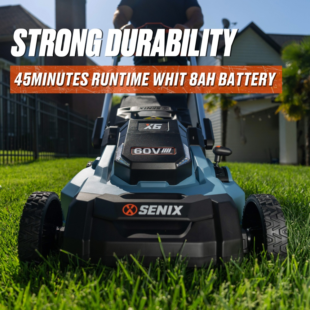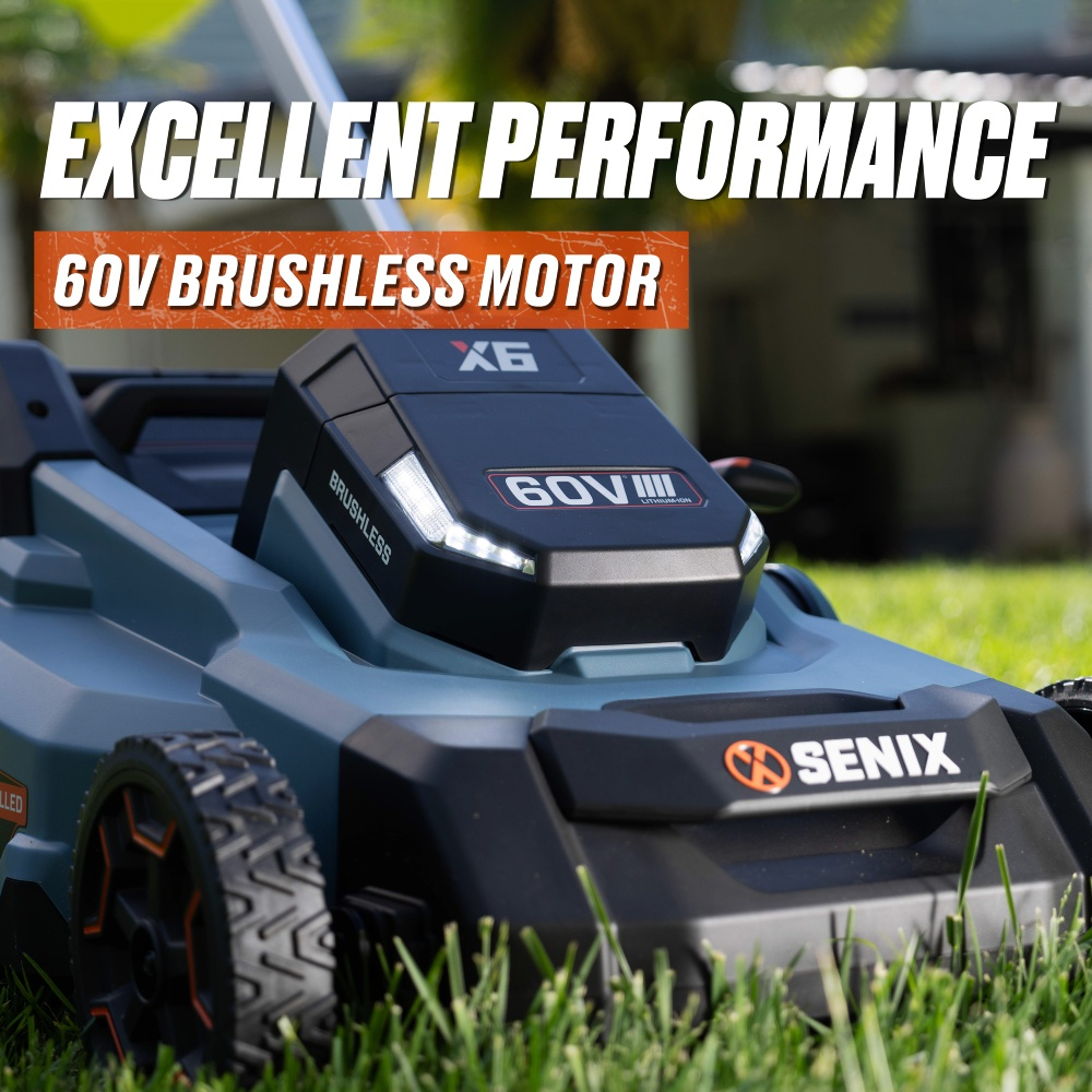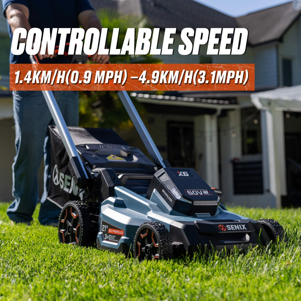 (5.0)The SENIX 60V 53cm Self-Propelled Lawn Mower features a powerful brushless motor, 3-in-1 mowing, and long-lasting battery runtime. With height-adjustable handles, self-propelled drive, and a 60L grass bag, it delivers comfort, efficiency, and precision for mowing large lawns with ease—even on slopes.