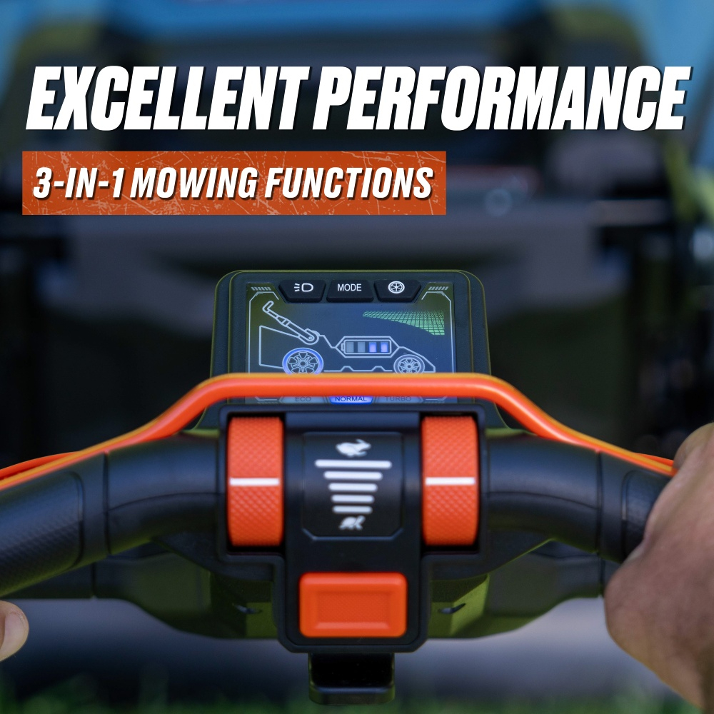 High-Efficiency Brushless Motor – 1200W motor adjusts speed based on grass conditions