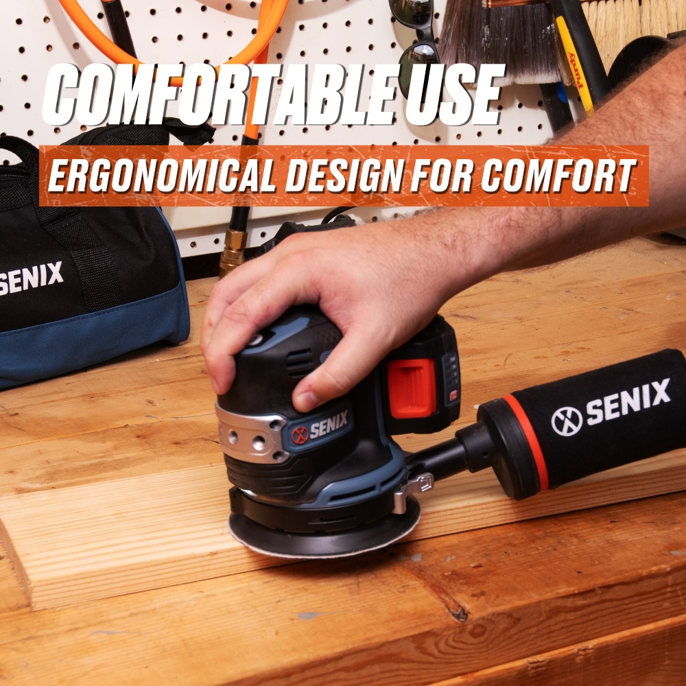 (5.0)The SENIX 20V Brushless Random Orbit Sander is built for speed, control, and clean results. With a powerful brushless motor, three-speed settings, and efficient dust collection, it delivers fast material removal and superior comfort—ideal for finishing wood, metal, and painted surfaces, all in a compact, cordless design.