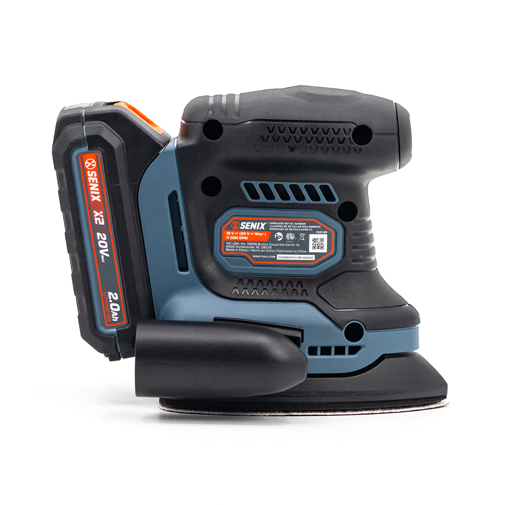 The SENIX 20V Brushed Orbit Detail Sander is built for precision, portability, and everyday performance. Its compact frame and 1.6mm orbit diameter make it ideal for finishing work, edge sanding, and tight spots where larger sanders can't reach. Delivering a constant 11,000 orbits per minute, this sander is perfect for smoothing wood, refinishing furniture, or prepping surfaces for paint.