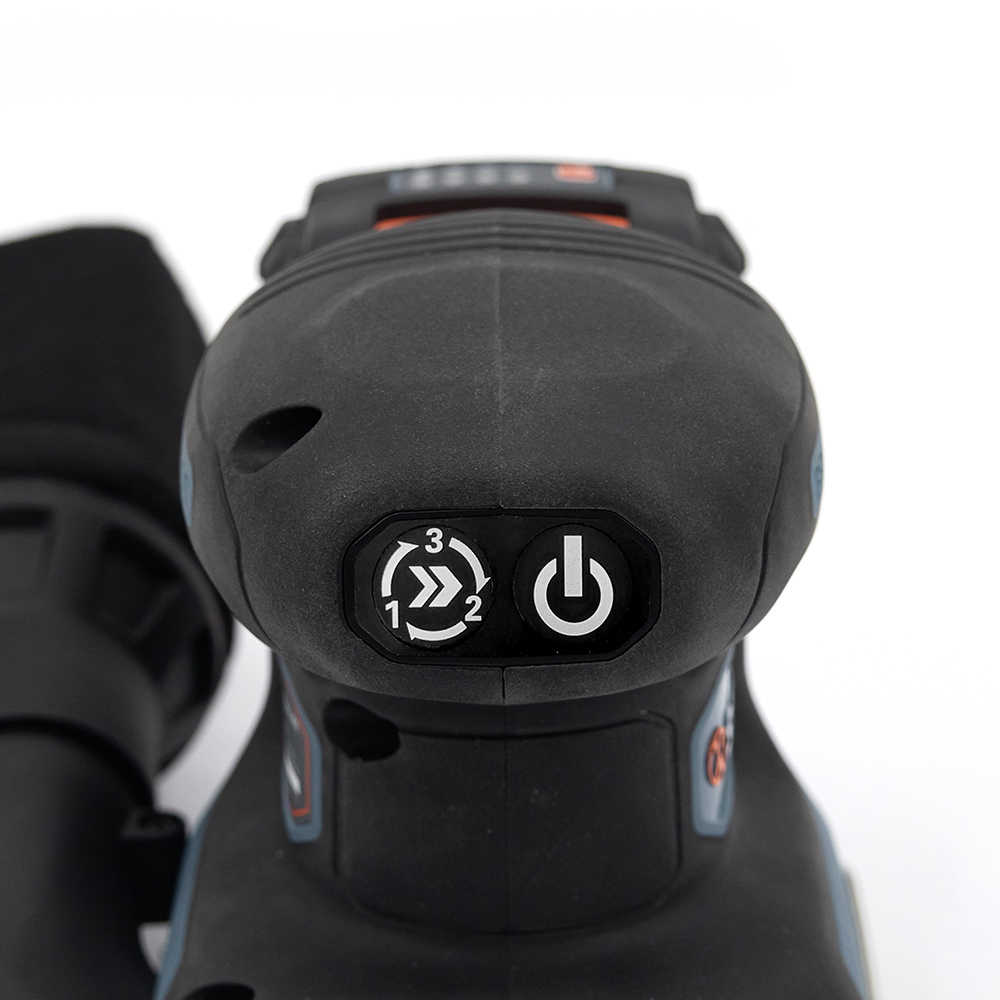 Variable Speed Control – Operates at 10,000 / 12,000 / 14,000 OPM for tailored sanding speed.