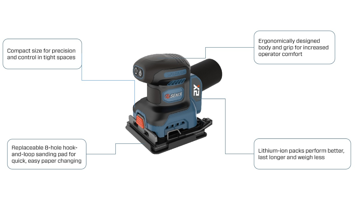 (5.0)The SENIX 20V Brushless Sheet Sander combines cordless freedom with professional performance. Its brushless motor, variable speeds, and low-vibration design deliver fast, smooth results on a wide range of materials—making it ideal for precise woodworking, refinishing, and home renovation tasks.