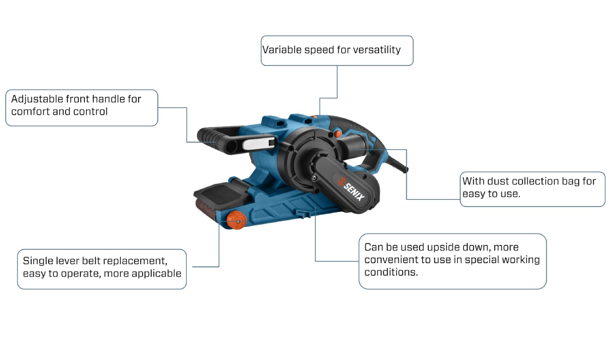 (5.0)The SENIX 1150W 76×533mm Variable Speed Belt Sander is designed for powerful performance and versatile sanding. With adjustable speed, an ergonomic front handle, and a convenient dust collection system, it ensures comfort and efficiency for both professionals and DIY enthusiasts. Its quick belt replacement and upside-down use option make it a truly adaptable sanding solution.
