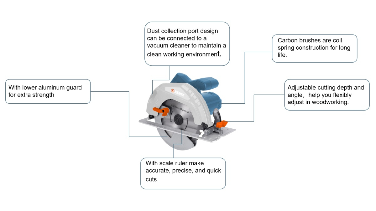 (5.0)The SENIX 1500W 185mm (7-1/4") Circular Saw delivers precision, power, and versatility for all woodworking tasks. Featuring an adjustable cutting depth and angle, a scale ruler for accurate cuts, and a durable carbon brush motor, it ensures efficient, long-lasting performance. Dust collection keeps your workspace clean while the aluminum guard adds extra strength and safety.